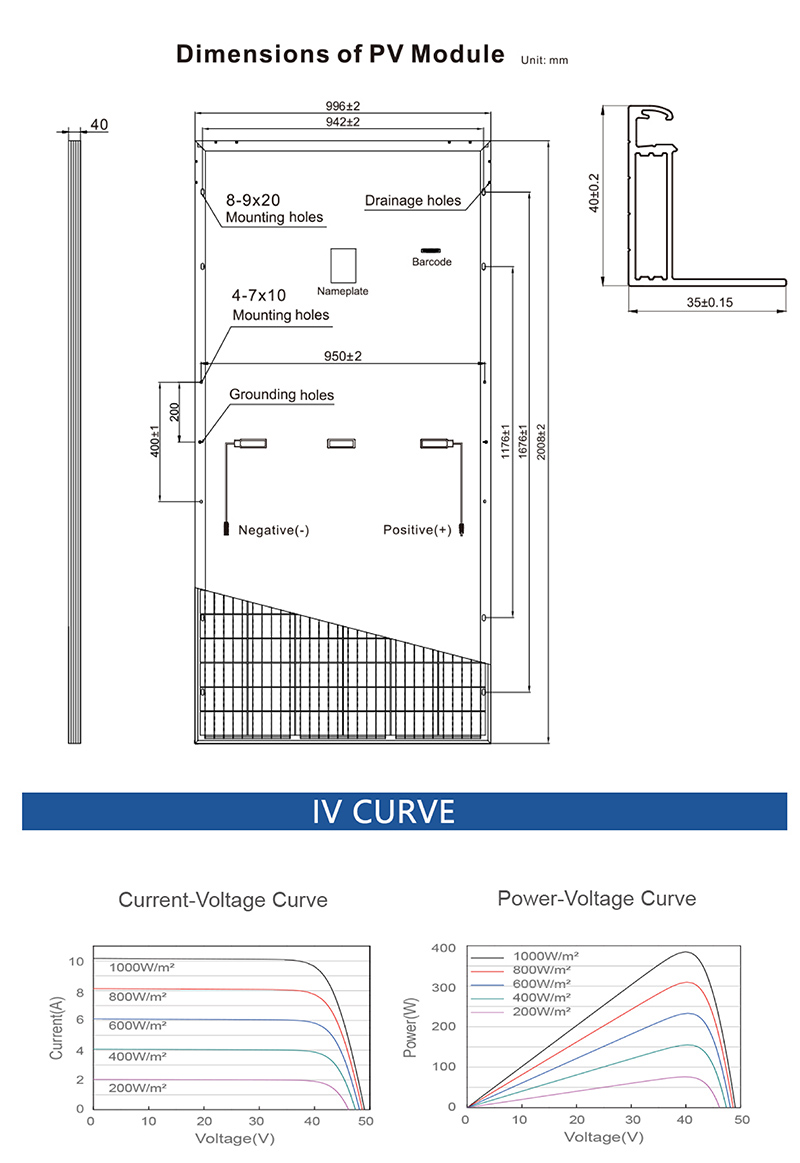 ambiente de teste padrão | Irradiance 1000W / m2, temperatura da célula 25 ℃ , Espectro am 1,5 |