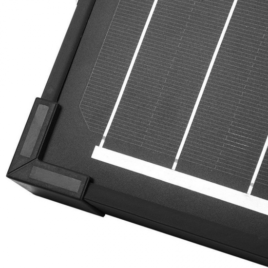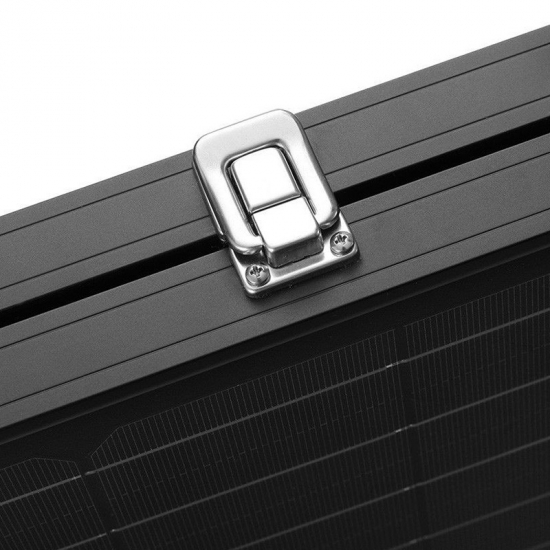 O O painel solar portátil possui um suporte de liga de alumínio resistente que permitirá para definir o ângulo de inclinação do PV módulo em vários graus, que otimizará a produção de energia solar do painel. O módulo solar é à prova d'água com an IP65 classificação para a caixa de junção .