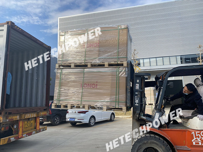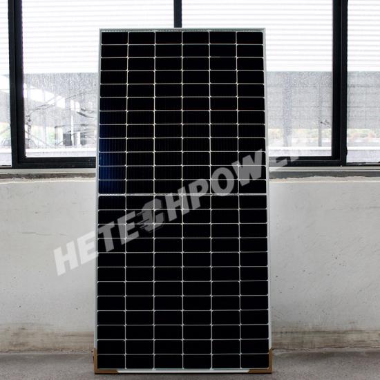 HETECH moldura de cor preta pv módulos com 9bb perc células solares mono, fabricadas por perc metade pv tecnologia,painel solar preto, painéis solares de alta eficiência 440w 445w 450w comumente usado para sistema de energia solar e planta solar comercial, faixa de energia de painel solar único 440w-450w com base em 144 células meias.