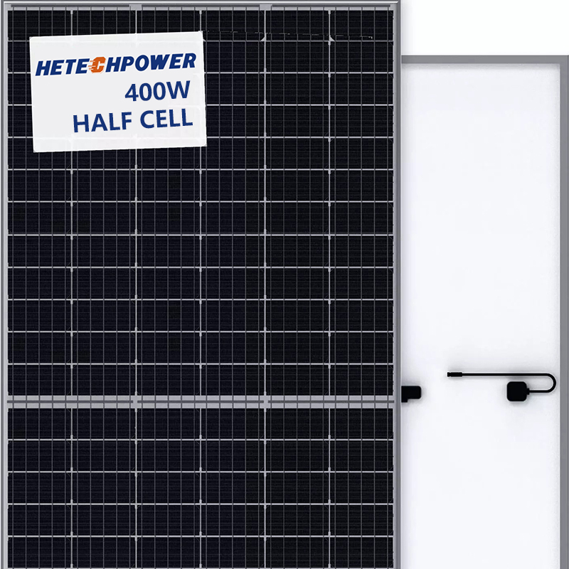 Painel solar Mono PERC de célula de ângulo reto. É um módulo de conexão à rede ideal para instalação no telhado com arranjo de meia célula de 144 (6X24) por painel . Os módulos Hetech foram projetados com tecnologia de meia célula PERC mono de 5 barramentos que diminui a perda de corrente e produz maior eficiência do módulo.