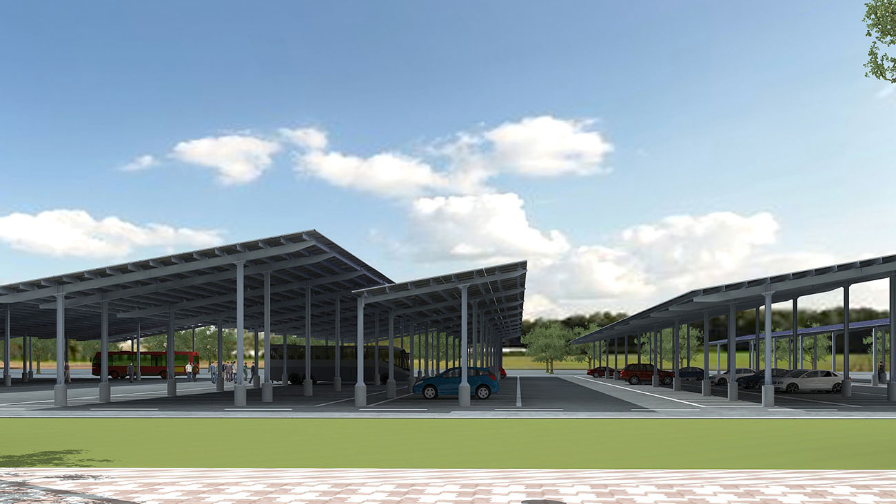pode não apenas abrigar veículos vento e chuva, mas também geram eletricidade usando